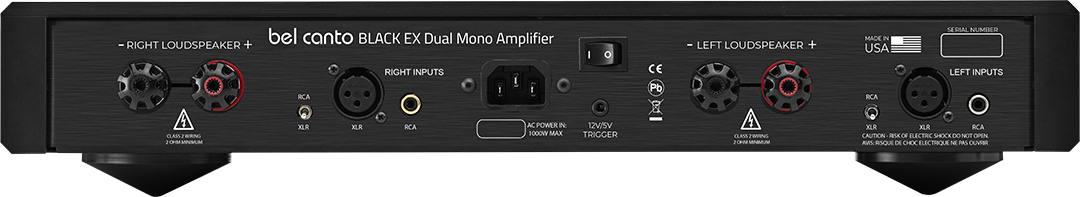 The Black EX Dual Mono Amplifier is a compact powerhouse, the ultimate iron fist in a velvet glove, combining iron grip with subtle musical cues that brings life to your music. In a custom high-grade aluminum chassis with independent power supplies unique to Black EX for true dual-mono performance. The EX Amplifier will delight with its ability to crate a compelling musical experience with any loudspeaker. The fully discrete analog signal path and selected components impart a dynamic, musicality that is unmistakable Bel Canto.